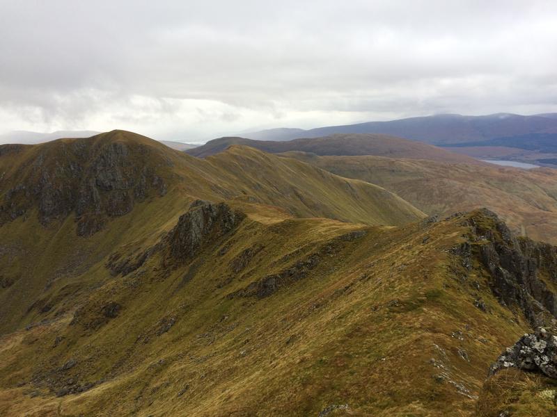 Great route. Ascended from Dubh Lighe to Streap, lots of up and down along the ridge - 1100m of ascent in total for a 909m peak.The narrow ridge from Stob Coire nan Cearc to Streap is the best bit. Descended to Corryhully by the "grassy rake", this peters out 2/3 of the way down, the rest to the valley floor is on quite steep grass. Great walk, made better by using the bus and not having to return to the car at the start, so seeing both glens on either side.