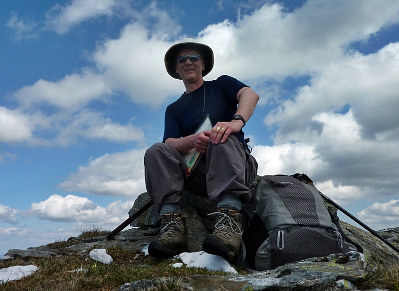 Peter Aylmer at the summit of Creag Mac Ranaich, a hot day in late May 2010