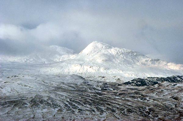We tried Kathleen Haddows suggestion of taking the right path on crossing the Allt Gleann Auchreoch. This proved to be a wet, but not muddy, route trodden by fisherman and follows the riverbank upstream leaving you to plow uphill through moss and heather. If you want to avoid the mud, deep heather and deer fences, follow the road up Glen Cononish to Cononish Farm where a bridge (NN304283) leads onto the fairly steep, but easy, northern slopes of Beinn Dubhcraig. Head S 3km to the summit ridge. Great views of Oss and Lui on ascent and descent.